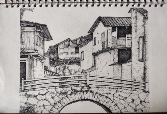 作品简介:创作于疫情期间,该图片来自于抖音!一位专门拍摄中国古镇风景的摄影师!当时这幅图片给我的感觉十分静谧!有古风古韵的意境美!也正由于疫情期间不能出去!在城市也便想到了古镇生活!也感叹现代生活发展过快!出现一系列的人口问题!土地问题!环境问题!等一系列城市化问题,向往古镇生活!
