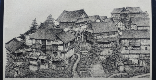 作品简介:创作于暑假!这幅绘画作品!是我暑假在培训机构任教所画!图中的地址是在江西千户苗寨,也感叹!中国古人的智慧!江西地处丘陵地带!不像北方地势平坦,房子的建筑呈组团式!而南方地处丘陵地!房子的建筑多散落而居!但江西千户苗寨却以组团而居 ,气势恢宏!难得的是,邻与邻之间,相互帮助!民风淳朴!在克服自然环境的恶劣条件下,中华民族发挥自身优势!创作了一幅!震撼人心的千户古建筑美丽画卷!