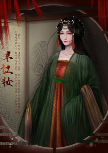 作品简介:本作品结合唐妆与现代画法,描绘了仕女深夜无眠,走向镜前的一瞬,美人妆去未半,珠翠半卸,衣衫半挽。色调沉黄不昏暗,画面却不见灯火,暗指仕女美貌照亮了帐中。盛唐文化,是我国历史长河中最璀璨、最美好的一颗明珠。