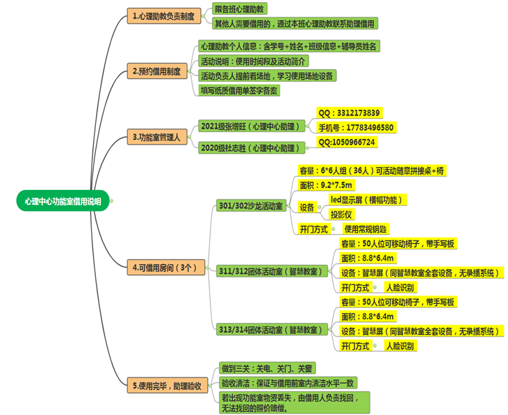 为了最大化发挥大学生心理健康教育与咨询中心部分场地资源使用价值,经领导商议决定,心理中心部分团体活动室可对外开放,各班级可预约借用。同时为了简化借用流程,确保功能室物资完整,功能室实行预约借用制度和心理助教负责制,特作如下说明(含借用流程):