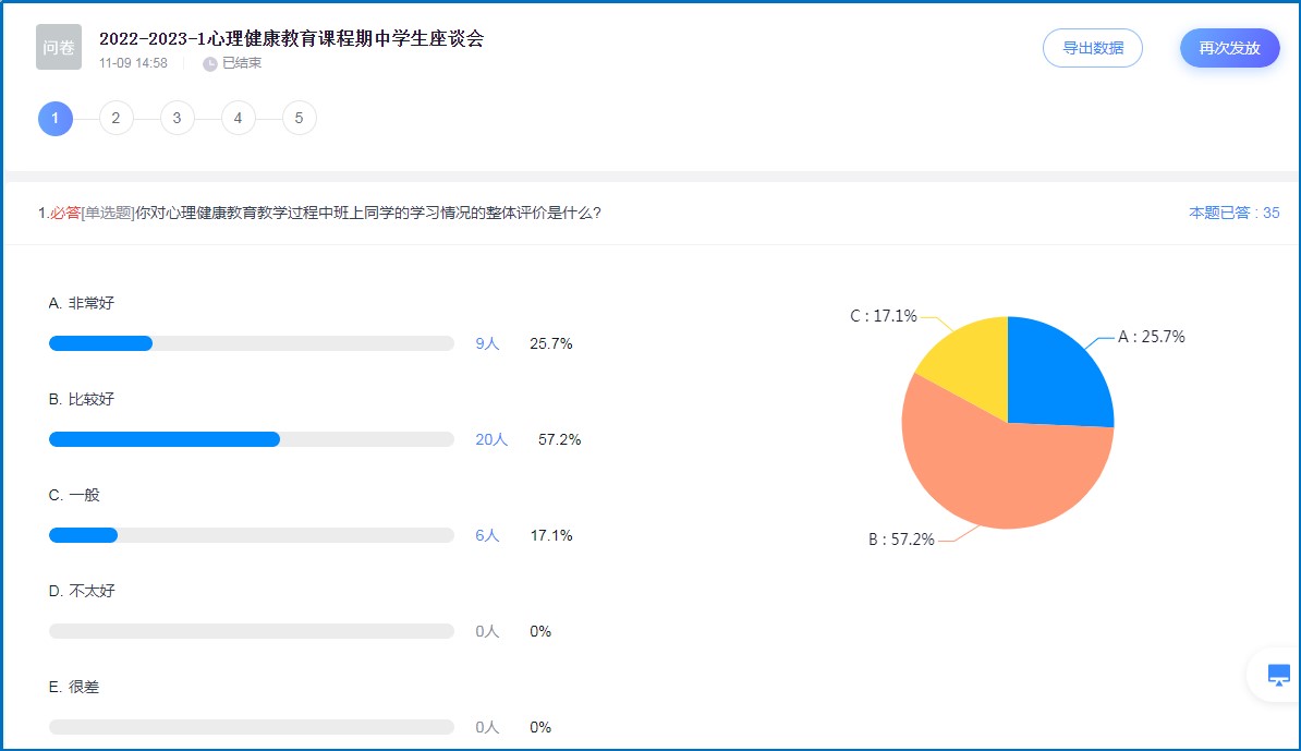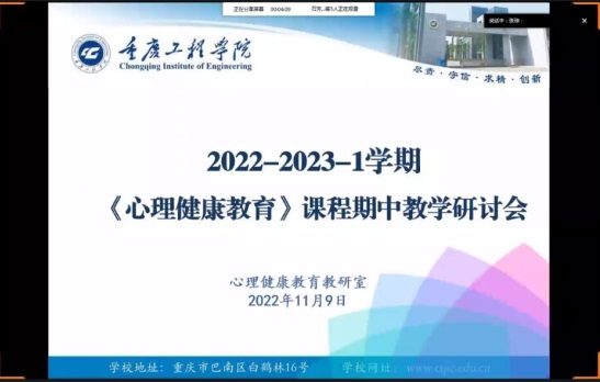 本网讯(大学生素质教育中心心理健康教育教研室)为进一步加强《心理健康教育》课程建设,2022年11月10日15:00,心理健康教育教研室针对期中学生座谈会学生反馈的结果,举行了第2022-2023-1学期期中教学研讨会,会议由张琼老师主持。针对同学们对心理健康教育课程提出的一些建议,如增加互动体验游戏,多讲案例帮助大家消化知识点,少讲理论知识等建议,老师们开启了讨论。最后就同学们对课程的正向反馈,张老师对教研室老师们进行了肯定和赞扬,加强了老师们上课的信心,唤起了大家的激情,为优化后续的心理健康教育课程打下了基础。