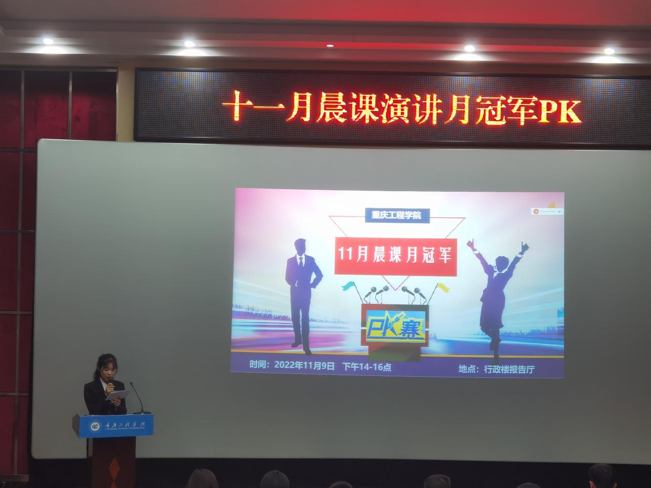 本网讯(文/图 大学生素质教育中心)2022年11月9日下午,大学生素质教育中心在行政楼报告厅举行了11月晨课演讲月冠军决赛。