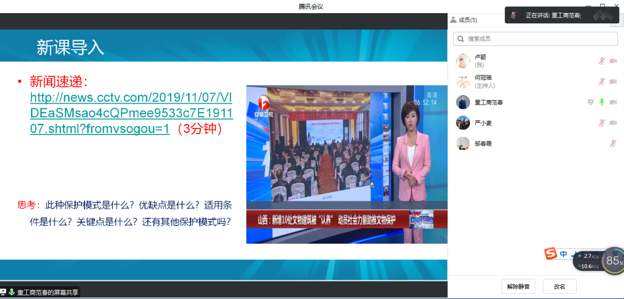 本次活动分为线下和线上两个部分进行。公共选修课的教师毛云莹、魏登雪、张耀芳、范春分别进行10分钟的课堂教学,还介绍了教学内容、教学设计、教学方法等。中心督导针对教师的说课内容进行点评,督导们分别从公选课的定位、对授课对象的定位、授课内容、教学设计、教学大纲、授课计划表、教案等方面进行细致地点评并提出具体的改进意见。教师们耐心听取建议并虚心接受。