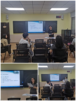 首先由教研室主任张老师结合教学大纲对本学期上课内容、教学目标进行了解说,然后由各位专职教师依次上台说课,活动形式主要采用了老师自行任选一次本学期教学章节进行说课,说基于OBE理念下教学目标设定、教学重点、教学目标达成情况(如何检验、检测教学效果)。最后,张老师对本学期期心理健康教育教研室的任务进行了探讨和分工,明确了每位专职心理教师的岗位职责,保证学期初各项教学工作顺利圆满完成。
