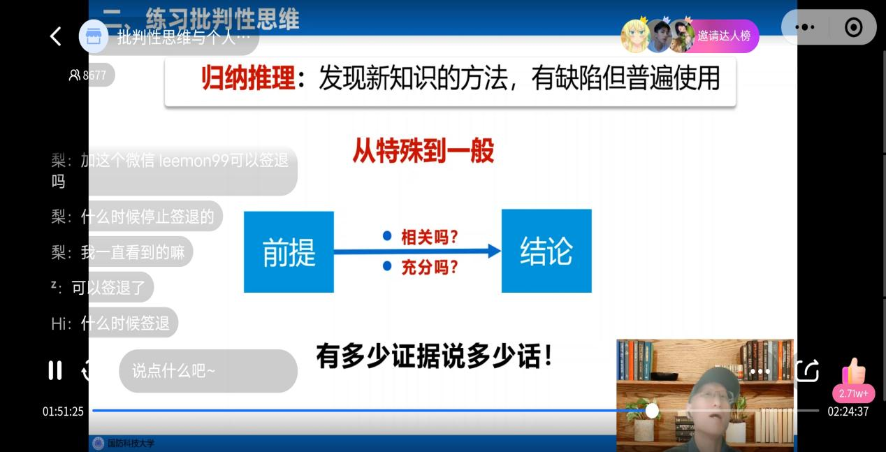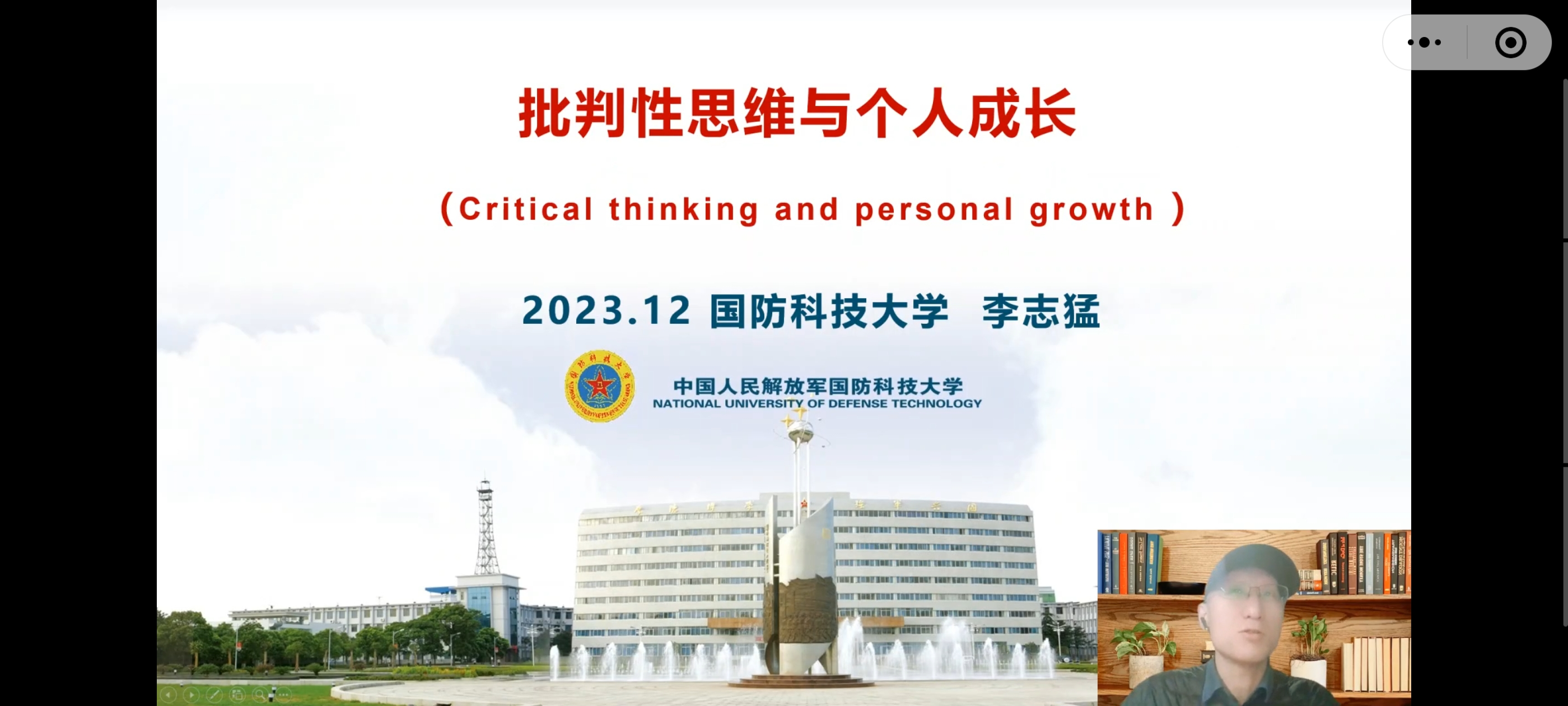 本网讯(图/文 大学生素质教育中心 肖鑫鑫)2023年12月20日下午,国防科技大学李志猛教授在小鹅通上开展了题为“批判个性思维与个人成长”的专题讲座。