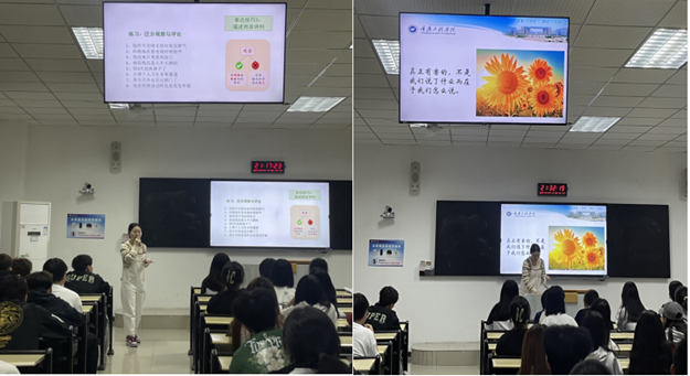 培训开始,戈老师就医生咨询、心理月度测评、心理健康文化节进行介绍答疑,然后和大家一起探讨如何构建良好宿舍关系。首先,以常见宿舍宿舍矛盾,引出人际沟通的本质是需求相互满足的过程,每个人内心的渴望和需求相同;然后,分析沟通三大要素缺失时,各种人际暴力沟通的出现;最后,讲解了如何运用非暴力沟通方式达到同频沟通。