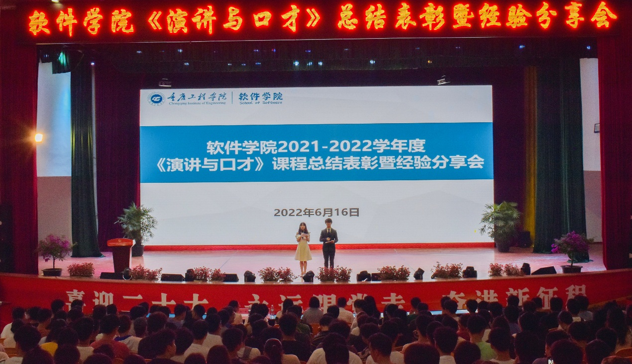 本网讯(文/图 软件学院 余巧)为表彰在2021-2022学年度《演讲与口才》课程中表现突出的个人和集体,6月16日,软件学院在学术报告厅召开《演讲与口才》课程总结表彰暨经验分享会。学校素质教育中心副主任邹春霞、软件学院党总支书记刘子菱、学生科长李阳、辅导员余巧、王芳、彭丽及2020级700余名同学参加了本次会议。