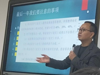 会议开始,石磊主任就毕业相关注意事项进行了详细介绍,重点强调了毕业条件问题,指出毕业生论文(设计)与毕业实习相关注意事项,其中列出往届毕业生的相关反面教材案例,旨在告诫学生无论做什么都要端正学习态度,不仅是对毕业论文负责,更是对自己的未来负责。