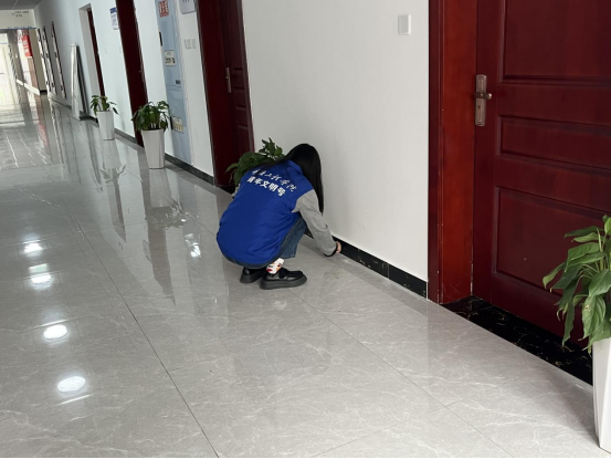 活动中,志愿者们对地面死角进行了清洁、走廊的绿植花盆等进行了擦拭,同时也摘掉了绿植上枯黄的落叶并进行浇水呵护,还用铲子对墙角和地砖上的石灰做了清除,用拖把对石灰粉尘进行了清理。