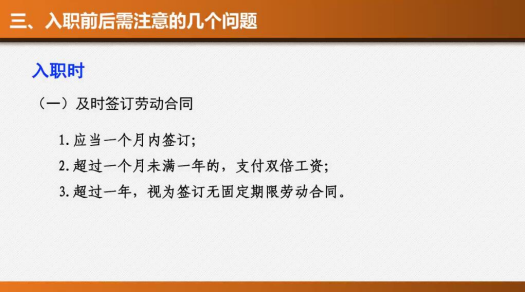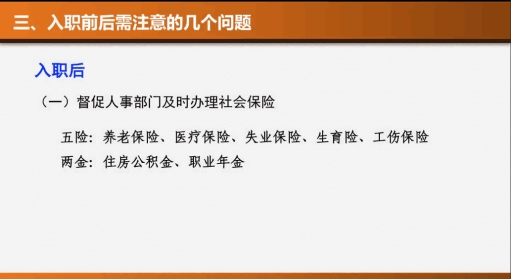 最后,杨律师为我们提醒了在入职前后需注意:入职前要及时签订劳动合同;入职后要督促人事部门及时办理社会保险。