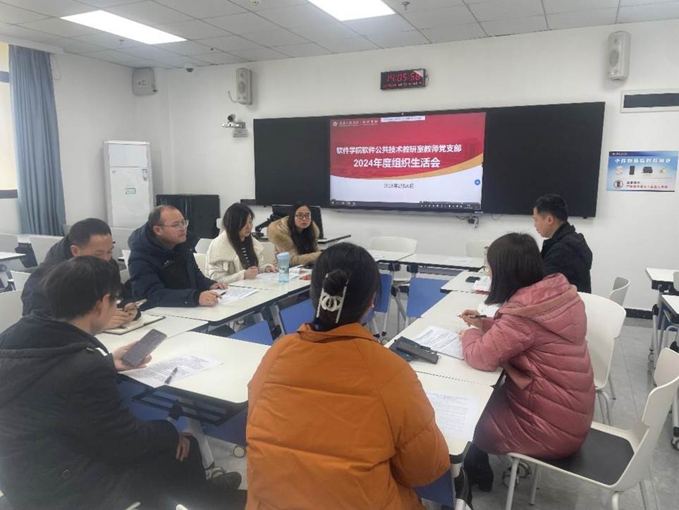 (文/图 软件学院 李玲) 为进一步规范党内政治生活,加强党员教育管理,提升党员党性修养,软件学院软件公共技术教研室教师党支部于2025年2月26日在7510组织开展了2024年度组织生活会,会议由党支部书记彭娟同志主持,全体党员通过线下+线上的方式共同参会。
