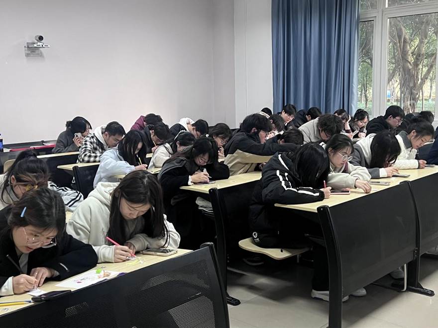 经过同学们的创意制作,40余枚手绘书签精彩呈现:同学们以彩铅笔为媒介,在素白卡纸上共同绘制出雷锋精神的多元表达。有人用渐变蓝色彩铅晕染出雨夜场景,雷锋撑伞的身影与星光交相辉映;有人以彩铅颗粒感勾勒出"螺丝钉"图案,金属质感中透出永不生锈的信念;更多同学选择将"把有限的生命投入到无限的为人民服务中去"的誓言,以不同字体、色彩进行艺术化呈现。展示区的"雷锋精神画廊"中,书签作品如繁星般错落有致,每幅画作都承载着青年学子对雷锋精神的个性化解读。