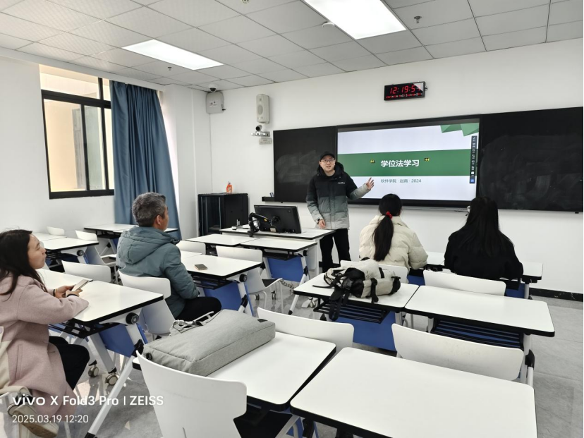 (文/图 软件学院 赵商)为深入贯彻落实《中华人民共和国学位法》(以下简称《学位法》),提升教研室全体教师对学位授予、学位管理等相关法律规定的理解,确保在教学和科研工作中依法依规开展学位授予工作,2025年3月19日下午,软件学院软件工程系前端教研组和对日教研组在7教407召开了关于《学位法》的学习讨论活动,教研组全体教师参会,本次教研会议由赵商老师主持。