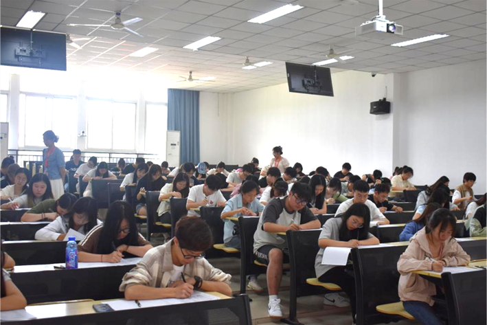 本次知识竞赛聚焦党的重要会议、重大历史事件和杰出历史人物,全面覆盖党的理论、指导思想、党的路线方针政策以及历史成就等内容。竞赛采用笔试形式,全面考查参赛人员对党史知识的掌握程度。比赛现场,参赛学生全神贯注、奋笔疾书,认真作答每一道题目,充分展现出积极向上的精神风貌。