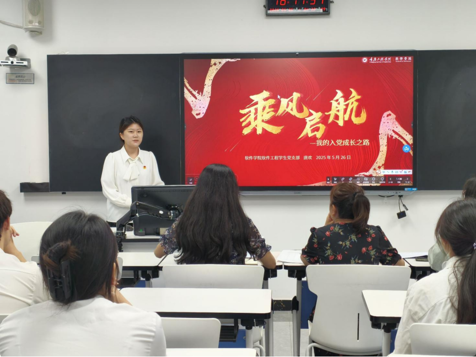 (文/图 软件学院 孙洪萍/谭毅)为进一步做好学院学生党员发展工作,提高学生党员发展质量,共同推动党支部的进步与发展。软件学院软件工程专业学生党支部于5月26日在7610教室开展2025年第一期发展对象汇报会。会议由支部书记王薇同志主持,支部组织委员渝旋、王芳同志及18名发展对象参会。