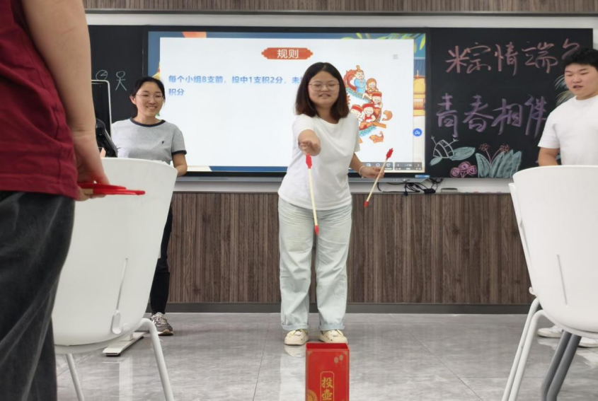 随后,活动进入精彩纷呈的互动环节。首先是知识竞答,同学们踊跃抢答,围绕端午节的历史典故、传统习俗等展开激烈角逐,现场气氛热烈,大家在答题过程中进一步加深了对端午文化的认知。
