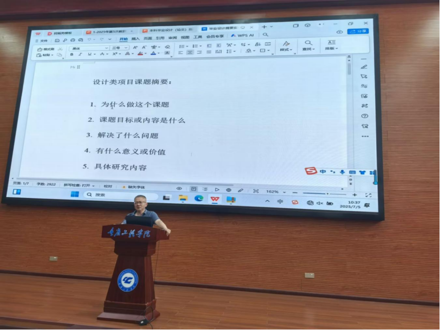 培训会上,张力生教授系统介绍了教育部对本科毕业设计(论文)的制度要求,他强调选题是决定论文质量的关键起点,并详细剖析了选题需考虑的四大核心因素,即专业性、创新性、可行性及应用价值,他结合实例重点阐释了系统设计与实现类课题的三大要点,即明确具体应用场景(如“基于物联网的智慧校园能耗监控系统”);清晰阐述分析设计的思想、方法与工具(如采用UML建模、敏捷开发流程)以及详述实现的技术路线、开发平台及资源(如SpringBoot框架、MySQL数据库、阿里云部署)。最后他通过正反案例对比,指导教师如何规避选题空泛、脱离实际等问题。