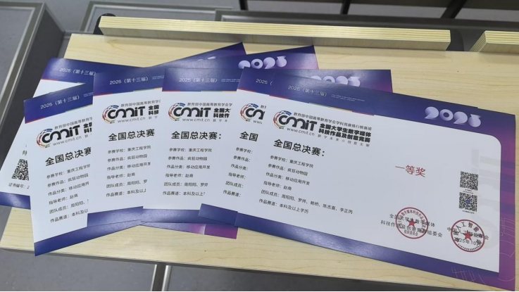 在软件学院的大力支持下,由赵商担任指导老师,学院赖桥、周阳阳等5名同学组成的竞赛团队,以作品《疯狂动物园》一路过关斩将。10月初,以重庆赛区荣获市赛一等奖;10月底,在哈尔滨工业大学的全国现场总决赛中,经过作品展示、现场路演答辩等环节的激烈角逐,最终以优异的成绩斩获全国一等奖(赛事最高奖),再次实现了我校在该项赛事上的又一次突破。