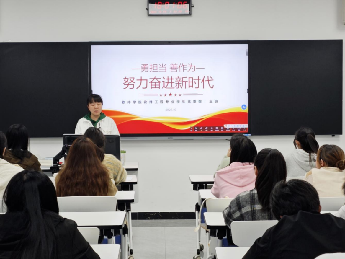 (文/ 软件学院 陈代玉/王毅为加强对党性分子的培养教育,树立正确的价值观。20251028软件学院软件工程专业学生党支部开展“勇担当 善作为—努力奋进新时代”主题党课党课由支部书记王薇同志主持大三发展对象、大二入党积极分子参与。