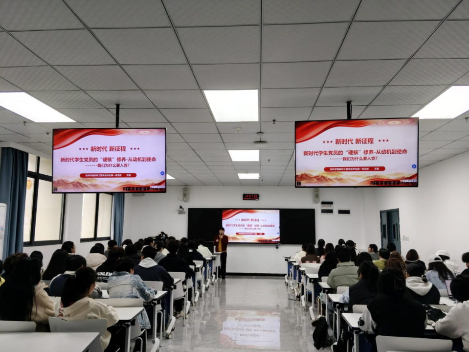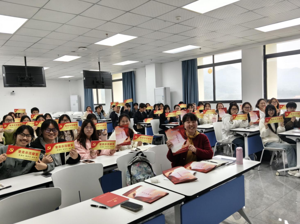 王薇同志紧扣“我们为什么要入党”这一核心问题,引导同学们端正入党动机,她以鲜活事例讲述信仰对青年成长的重要意义,生动阐释信仰纯粹而坚定的力量。她勉励全体同志,要争做“眼里有光、脚下有泥”的新时代青年,坚守“组织上入党一生一次,思想上入党一生一世”的信念,以责任担当彰显党员本色,以实际行动诠释初心使命。紧接着支部举行“先锋示范岗”授牌仪式与“红旗领航示范寝室”启动仪式,通过示范引领、阵地创建,推动党员先锋模范作用融入日常学习生活,营造争先创优、示范带动的良好氛围。