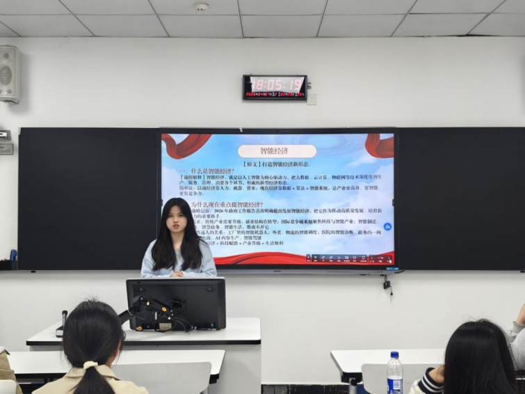 会议伊始,负责人对本学期3月至6月的整体工作进行细化推进,并着重强调4月15日晨课宣讲相关准备工作,提醒成员提前打磨内容、熟悉流程。同时,会议对前期活动参与情况进行积分统计与通报,以规范管理激发团队活力。理论学习环节,团队围绕智能经济开展专题学习。主讲人从概念内涵、发展背景、主要内容与应用场景等方面展开讲解,结合人工智能、大数据、云计算等核心技术,以及智能制造、智慧医疗、智慧政务、智能生活等实际案例,帮助成员理解智能经济与新质生产力的紧密联系,为宣讲储备前沿理论知识。随后团队针对宣讲内容进行打磨,对成员的语言表达节奏、情感传递方式等方面提出改进建议,为成员后续提升宣讲水平指明了方向。