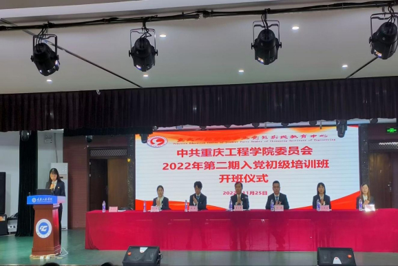 本网讯(文/谭清月 图/双桥校区记者团)为深入贯彻落实习近平新时代中国特色社会主义思想和党的二十大精神,根据发展党员工作要求,11月25日,重庆工程学院双桥校区在报告厅举行了2022年第二期入党初级培训班开班仪式。仪式由双桥校区党工委学生第二支部书记李小凤主持。