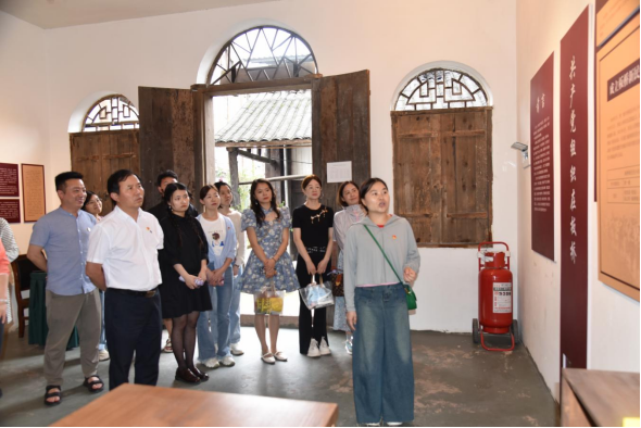 教师党员们一同前往永川区板桥镇板桥老街参观了“一院三馆”,即艺文书院、红色记忆馆、历史文化馆和民风民俗馆。在活动现场,双桥校区党工委学生支部书记担任“临时讲解员”,分享了革命英烈的感人故事,带领大家参观了革命文物,明清时代的建筑构件、木雕、石雕、古床等物品,还介绍了剪纸艺术等非物质文化,深刻追寻了红色记忆,深入开展了党史学习教育。