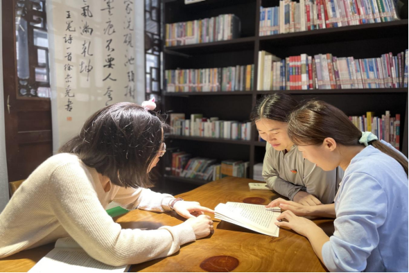 值得一提的是,在艺文书院里,开展了“书香浸润心灵,读书伴我成长”集体读书活动,老师们在书院里认真阅读,感受着阅读带来的文化魅力,阅读到精彩处,还不禁探讨起来,达到了在书中遨游,在书中成长的效果。