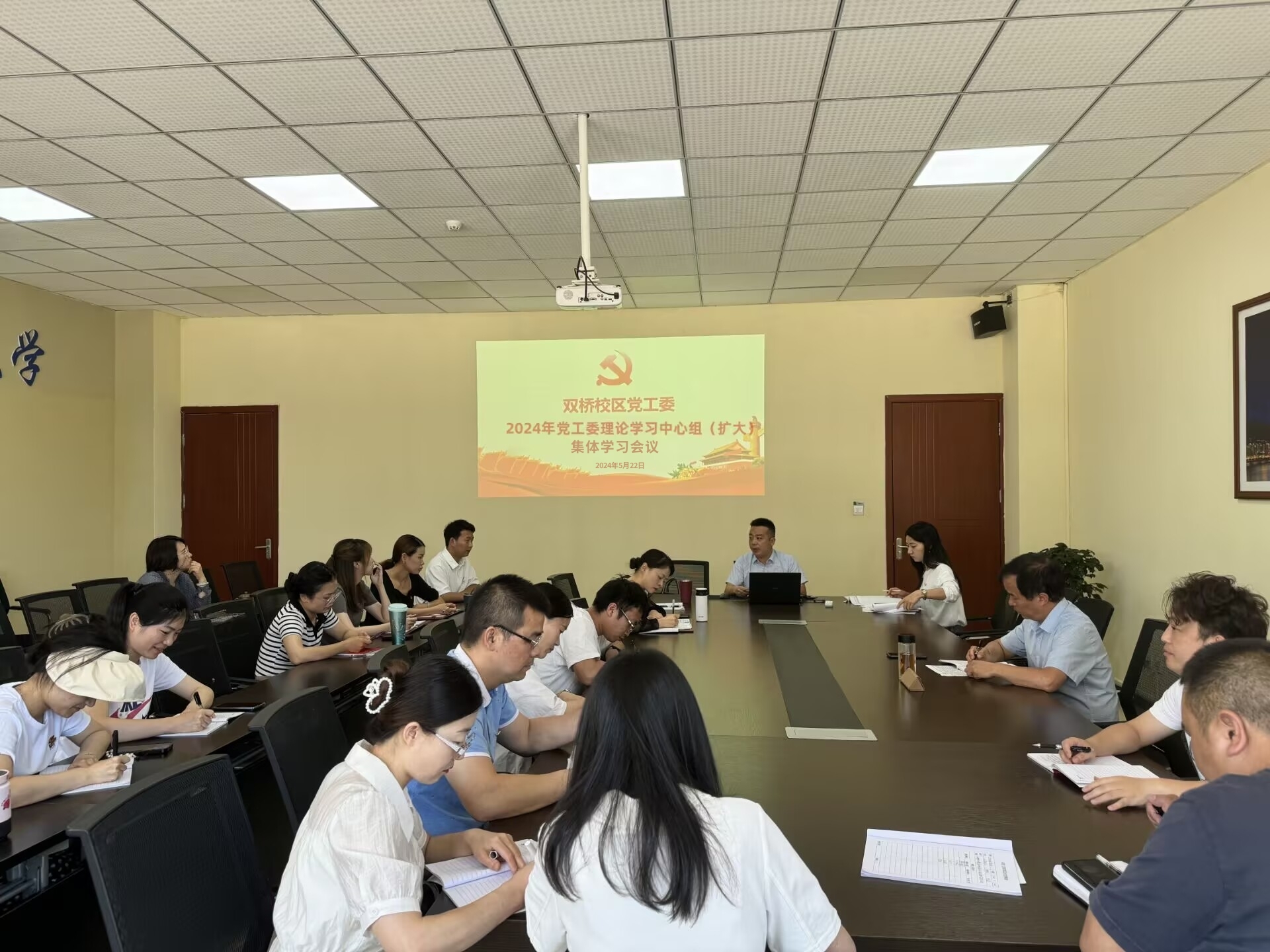 为深入学习贯彻党的二十大精神,切实增强班子的责任感,5月22日,双桥校区党工委召开了2024年第4次党工委政治理论学习中心组(扩大)学习会议。双桥校区党工委委员、各支部书记参加。