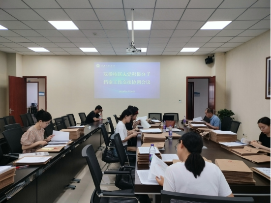 本网讯(文/图 刘加 )为扎实做好两校区入党积极分子档案交接工作,确保入党积极分子档案的完整性和准确性,6月20日上午,双桥校区党工委召开了入党积极分子档案工作交接协调会议。
