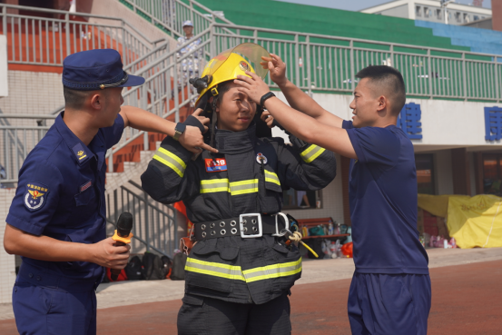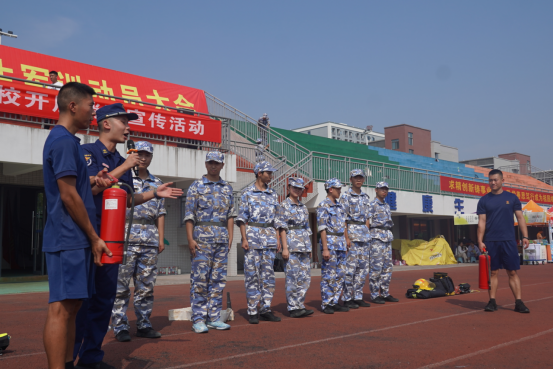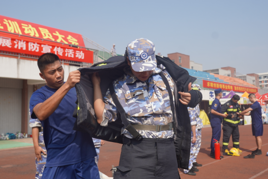 演练结束后,双桥经开区消防救援大队田鹏在校园田径运动场为学生们进行了灭火器、消防水带、防火服等消防器材地讲解和操作演示。过程中,学生轮流上阵,亲自操作使用灭火器、穿戴防火服。一位参与灭火演练的大一新生表示:“这次演练让我学到了如何正确使用灭火器,也让我认识到掌握消防知识的重要性。”