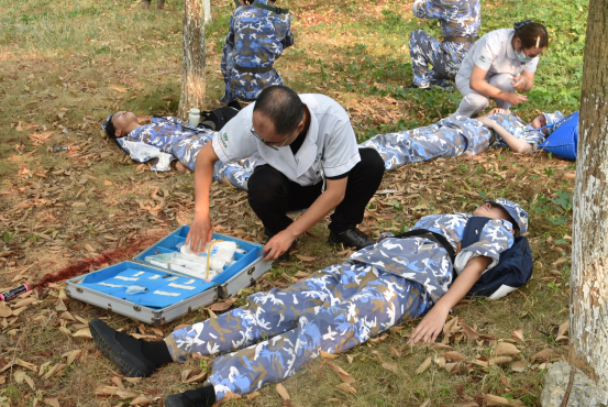 9月26日上午7:00,唐小勇宣布拉练开始。随后,全体新生在教官的带领下开展拉练,从双桥校区东门出发,步行前往龙景湖,绕湖半圈再返回学校。拉练里程约10公里,时长约为2个小时。在拉练过程中,军训团还组织学生开展了应急演练,模拟空袭、轰炸等场景,让学生们不仅掌握了基本的军事技能,还增强了国防意识和安全意识。值得一提的是,为保障军训拉练工作顺利进行,学校在拉练过程中设置了2个补给点,每个补给点配备救护车、医护人员、充足的水源和应急干粮等。