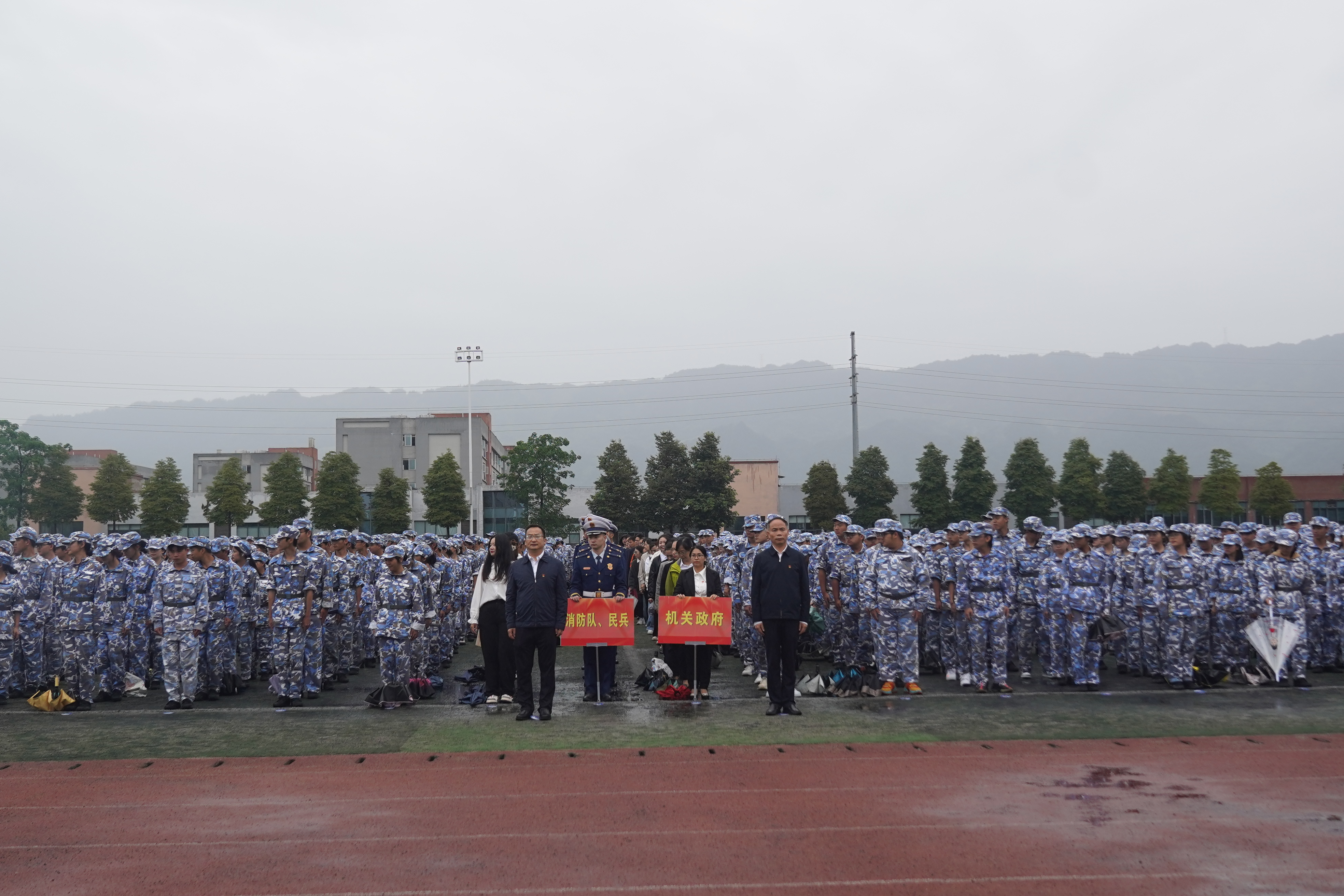 当天,大足区委宣传部相关负责人、通桥街道干部、双路街道干部、双桥经开区消防救援大队、大足区基干民兵以及我校学生等 900 余人齐聚足球场。他们精神饱满,队列整齐,共同期待着那庄严的时刻。