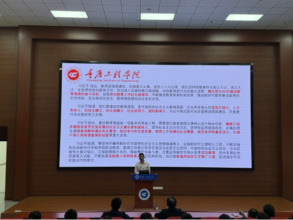 邹均对“学习贯彻习近平总书记在全国教育大会上的重要讲话精神”进行了专题讲解,传达了全国教育大会的核心要义,强调了教育在国家发展中的基础性、先导性、全局性作用,以及新时代教育工作的新使命、新任务和新要求。讲解过程中,还结合双桥校区的实际情况,从教育理念更新、教育模式创新、教育评价改革等多个方面进行了深入解读。