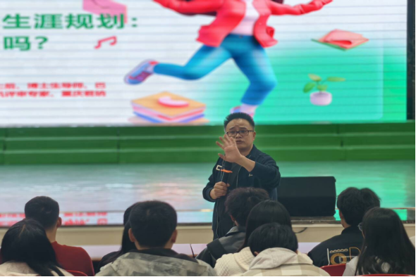 谷教授以自身真实事迹阐述了职业生涯规划的重要性,鼓励同学们尽早设定职业目标。他围绕职业生涯规划基本步骤、自我评估、职业目标确立等内容诠释了职业生涯规划的解决方案;他还从职业市场需求与社会实践帮助同学们分析职业路径选择的策略。最后,谷教授还强调了新时代青年应关注国家时事,提升社会责任感和使命感,鼓励同学们持之以恒,实现自我突破。