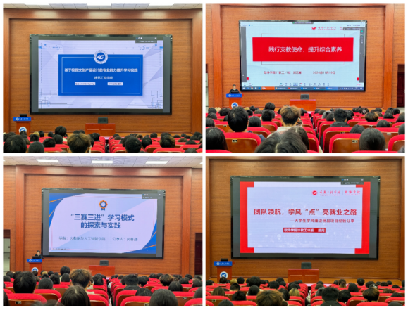分享会上,特邀的优秀学风精品项目建设团队负责人带来了满满的干货。“基于三力就业提升计划促进学风建设的探索与实践”“软件学院红心支教团学习能力提升路径与探索”“三赛三进学习模式的探索与实践”“团队领航,学风点亮就业之路”等项目的分享,为学弟学妹们带来了项目建设的宝贵经验和班级学风建设的有效方法。
