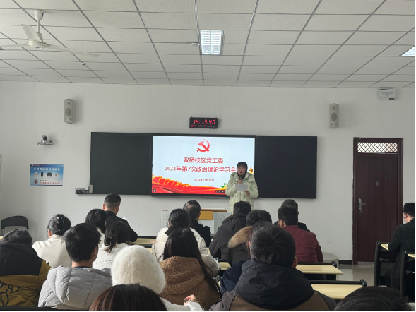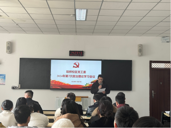 本网讯(文/图 双桥校区吕颖莉)为进一步提升双桥校区党工委全体教职工的纪律意识和规矩意识,确保教职工始终保持高度的政治自觉和行动自觉,11月27日上午,双桥校区党工委组织召开了2024年第7次全体教职工政治理论学习会议。学校副校长、双桥校区管委会主任唐小勇,及双桥校区党工委全体教职工参加。会议由双桥校区党工委副书记孙建主持。