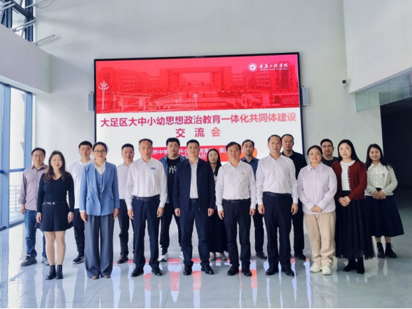 (本网讯 文 / 刘娅楠 图 / 谭绘琴)为深入学习贯彻习近平总书记关于大中小学思想政治教育一体化建设的重要论述,推进大中小学思政课一体化改革创新,塑造立德树人新格局,4月10日下午,大足区大中小幼思想政治教育一体化共同体建设交流会在我校双桥校区顺利召开。