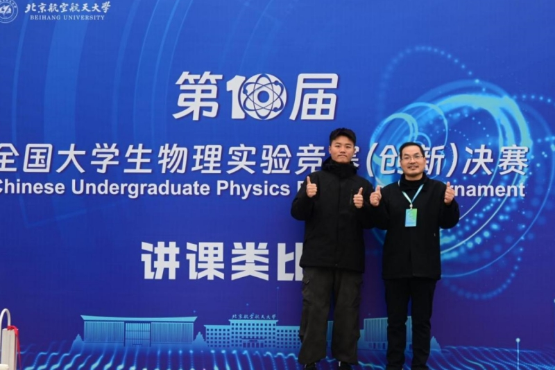 本网讯(文/图 基础学院 陈仕国)近日,第十届全国大学生物理实验竞赛(创新)决赛在北京航空航天大学落下帷幕。我校学子与来自包括北京大学、清华大学、中国科学技术大学、浙江大学等全国各地667所高校的选手展开了激烈的竞争,最终斩获一等奖1项、二等奖2项、三等奖2项的好成绩。