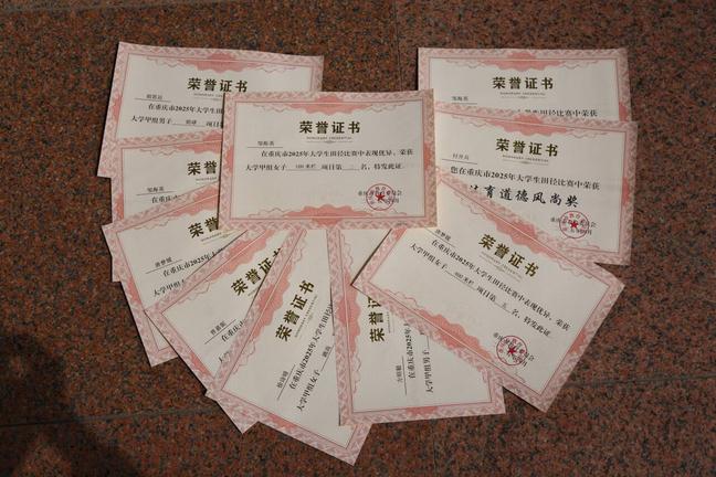 据了解,本次比赛吸引了重庆大学、西南大学、西南政法大学等全市67所高校的1056名运动员参赛,设甲组(本科院校普通组)、乙组(高职高专组)、丙组(体育专业组)三个组别。我校田径队由基础学院体育教研室裘进老师担任主教练、唐贵仙老师担任教练,经过精心选拔和刻苦训练,共选派10名学子代表学校参赛。参赛学子共有10人次获得奖项,5人次创造或打破学校纪录。